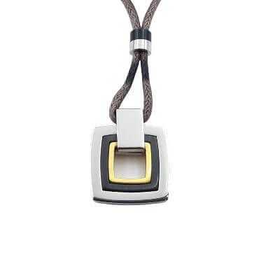 Ανδρικό Κολιέ Comete με δερμάτινο κορδόνι και ατσάλινο-επιχρυσωμένο στοιχείο.