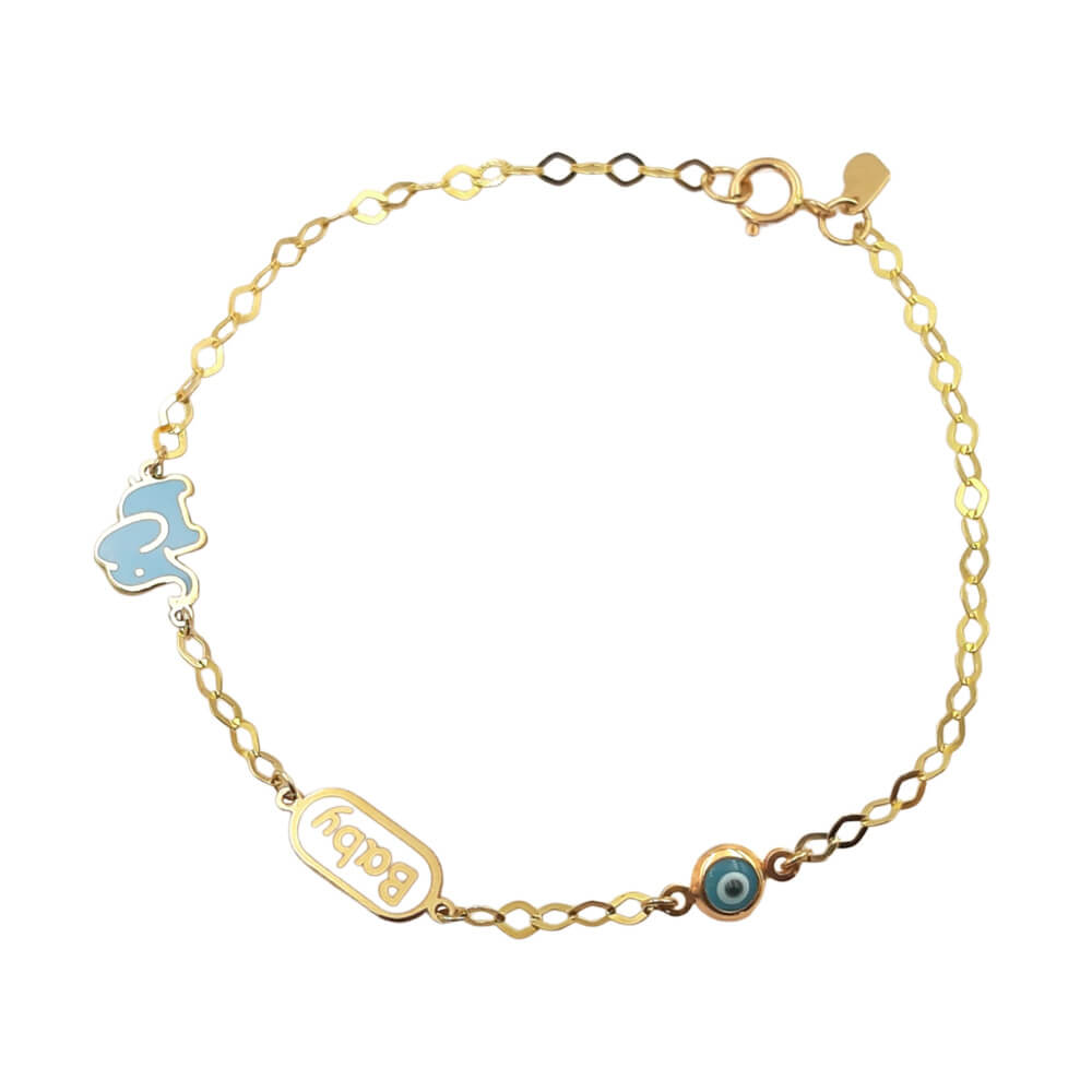 Βραχιόλι παιδικό από χρυσό 14 καρατίων με λουστρέ φινίρισμα & στοιχεία αρκουδάκι-baby με σμάλτο.