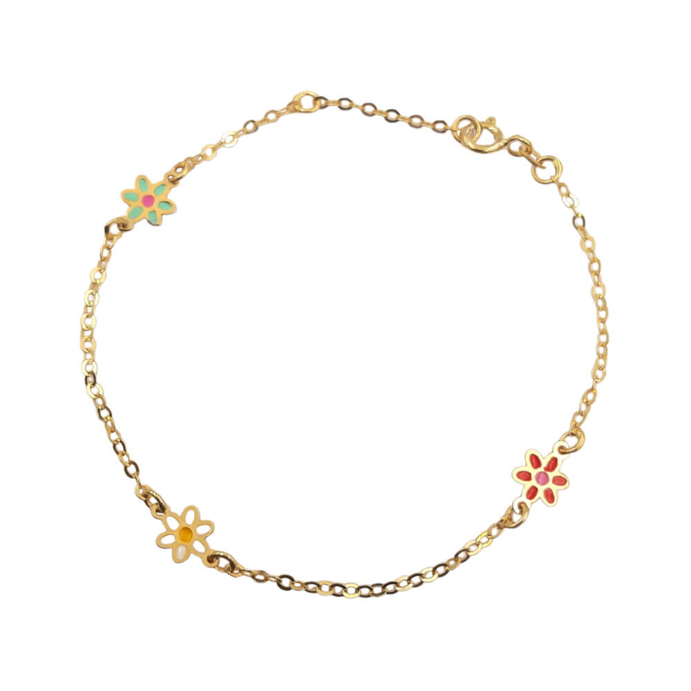 Βραχιόλι παιδικό από χρυσό 14 καρατίων με λουστρέ φινίρισμα & στοιχεία μαργαρίτες με σμάλτο.