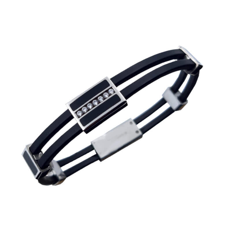 Βραχιόλι Comete με καουτσούκ και λεύκα ατσάλινα στοιχεία με σμάλτο και ζιργκόν.