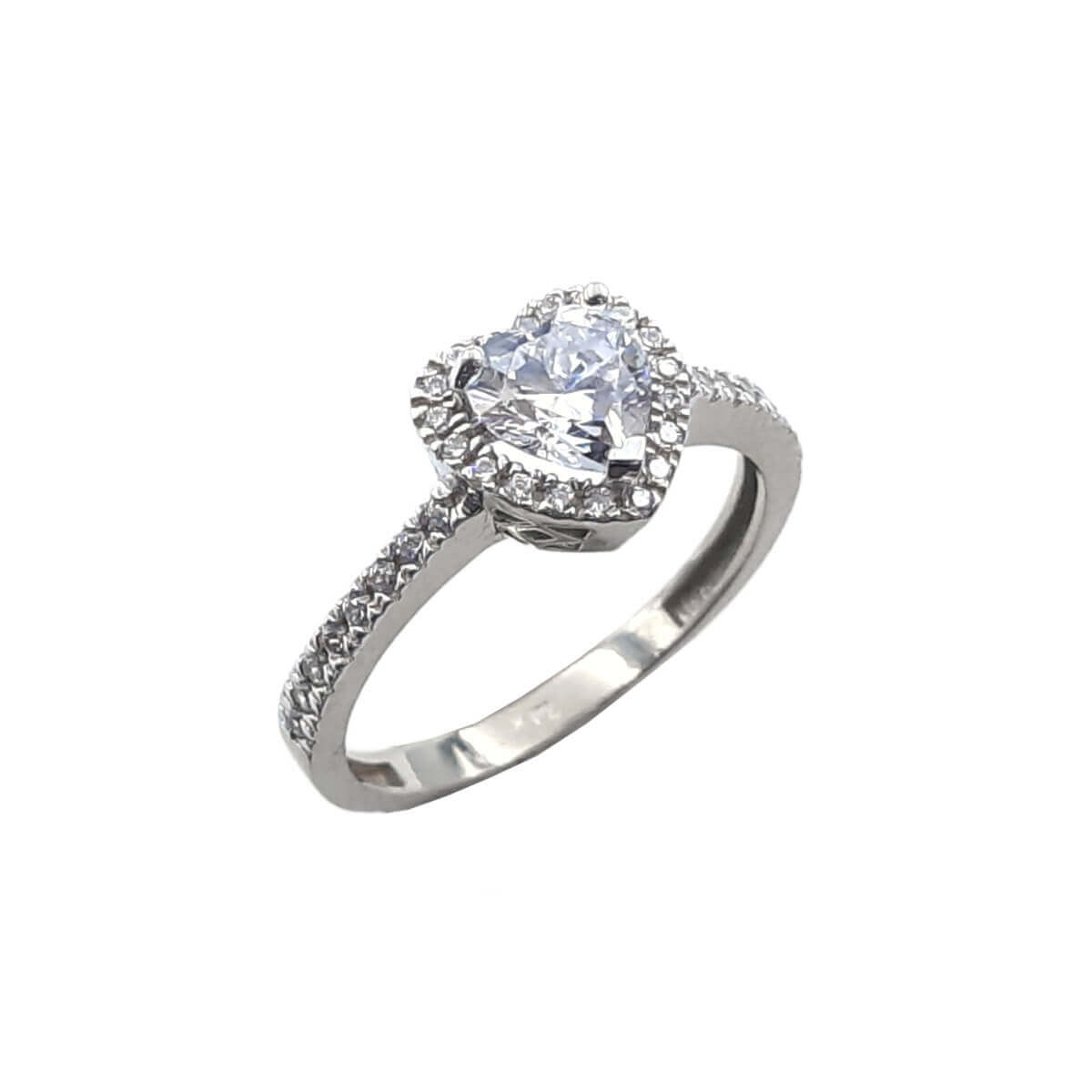 Δαχτυλίδι “καρδιά” από λευκό χρυσό 14 καρατίων με ζιργκόν.