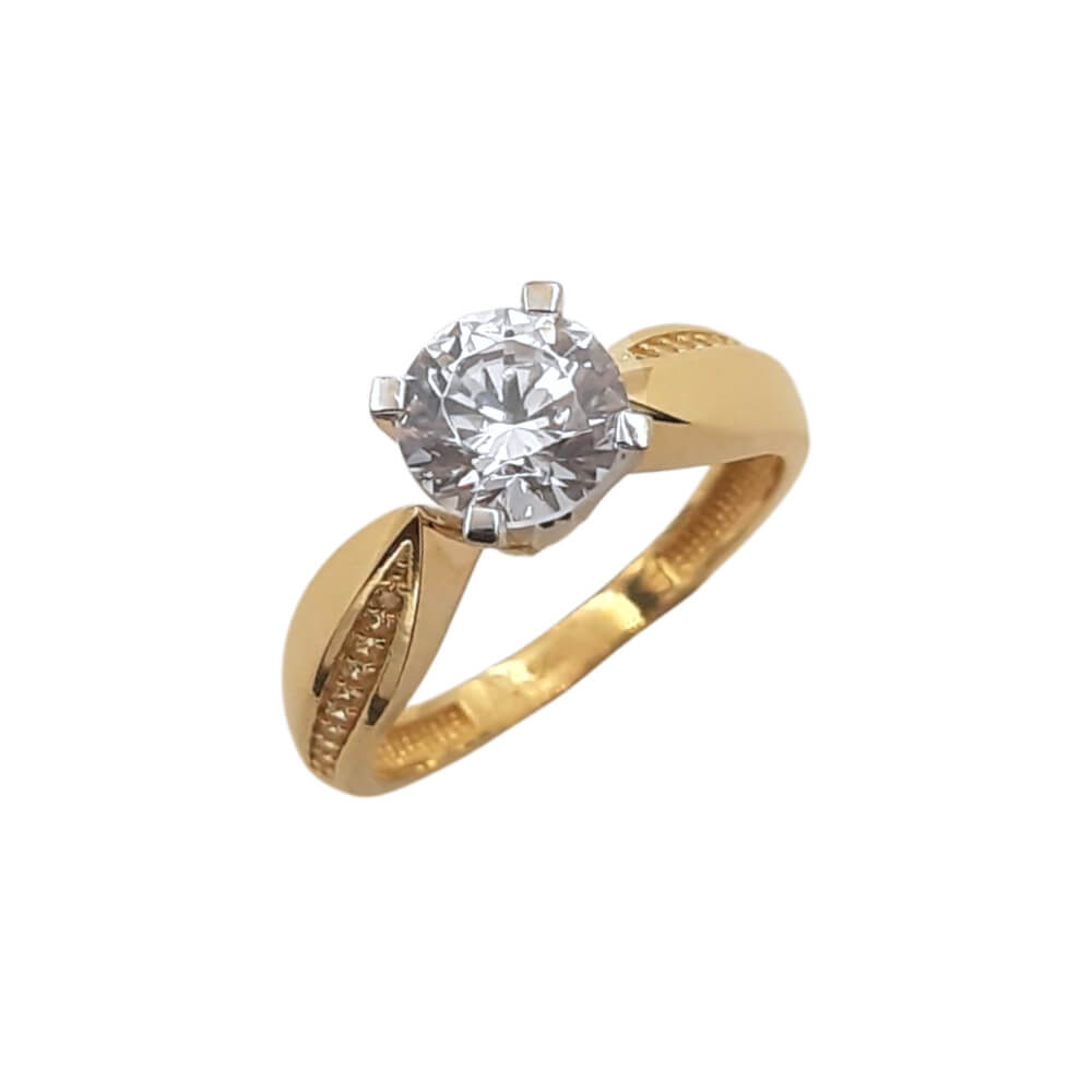 Δαχτυλίδι μονόπετρο από χρυσό 14Κ με ζιργκόν.