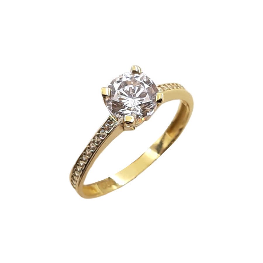Δαχτυλίδι μονόπετρο από χρυσό 14Κ με ζιργκόν.