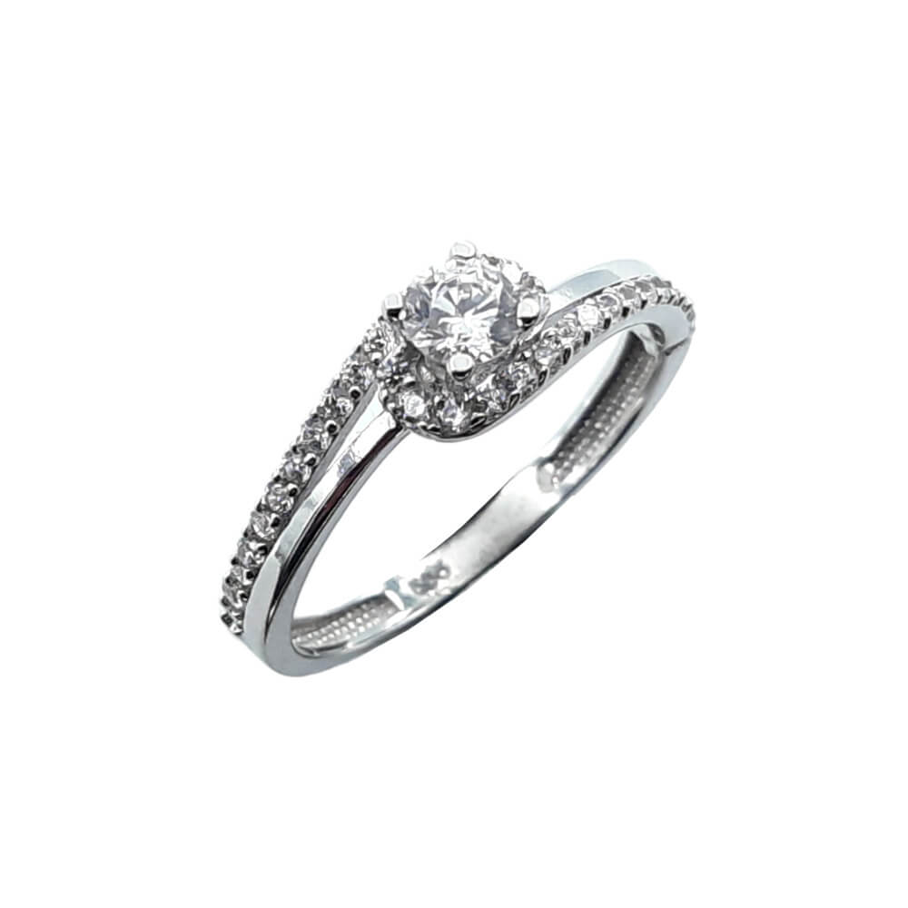 Δαχτυλίδι μονόπετρο από λευκό χρυσό 14Κ με ζιργκόν.