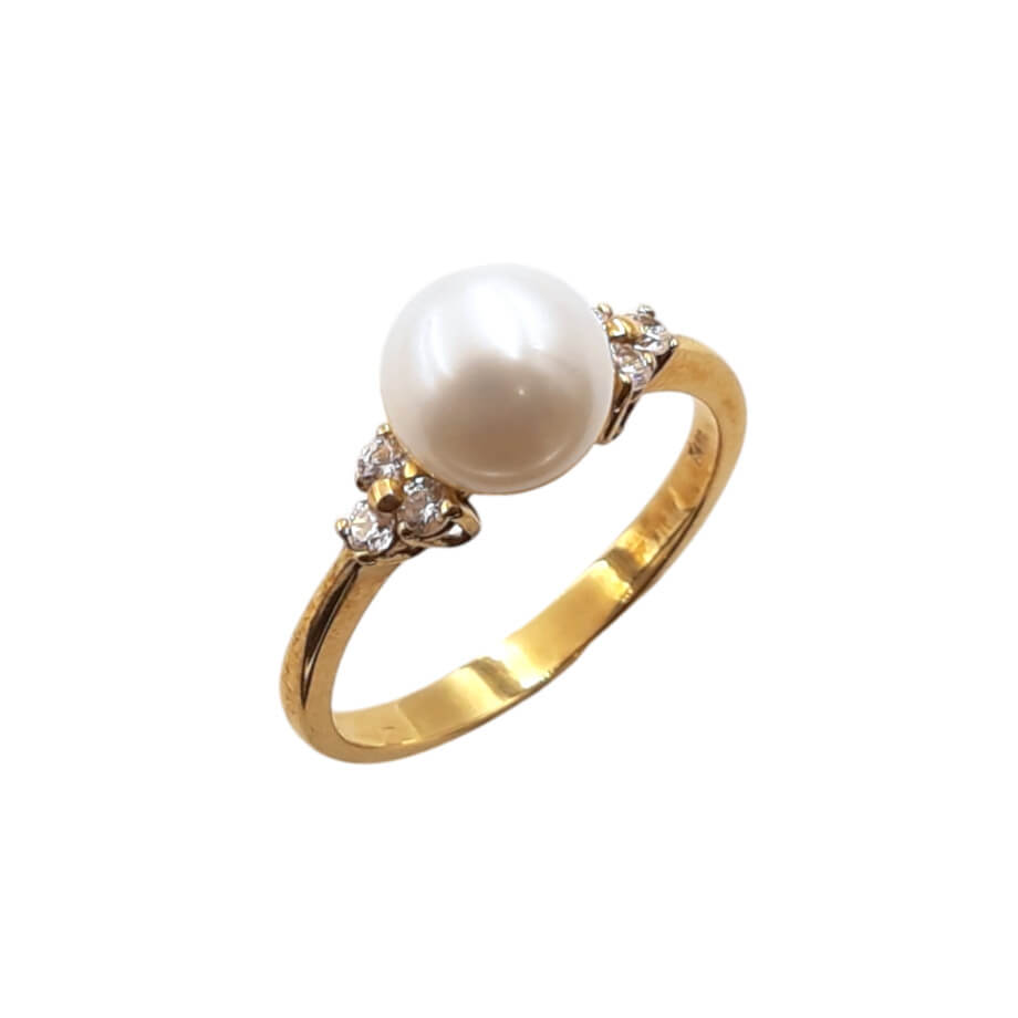 Δαχτυλίδι σε χρυσό 14 καρατίων με μαργαριτάρι & ζιργκόν.