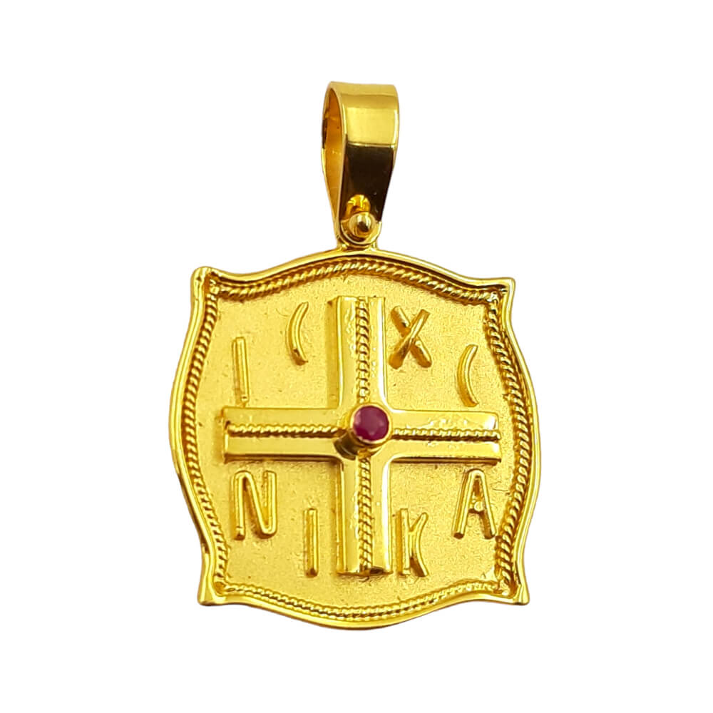 Φυλαχτό Κωνσταντινάτο από χρυσό 18 καρατίων διπλής όψεως με ρουμπίνι πέτρα.
