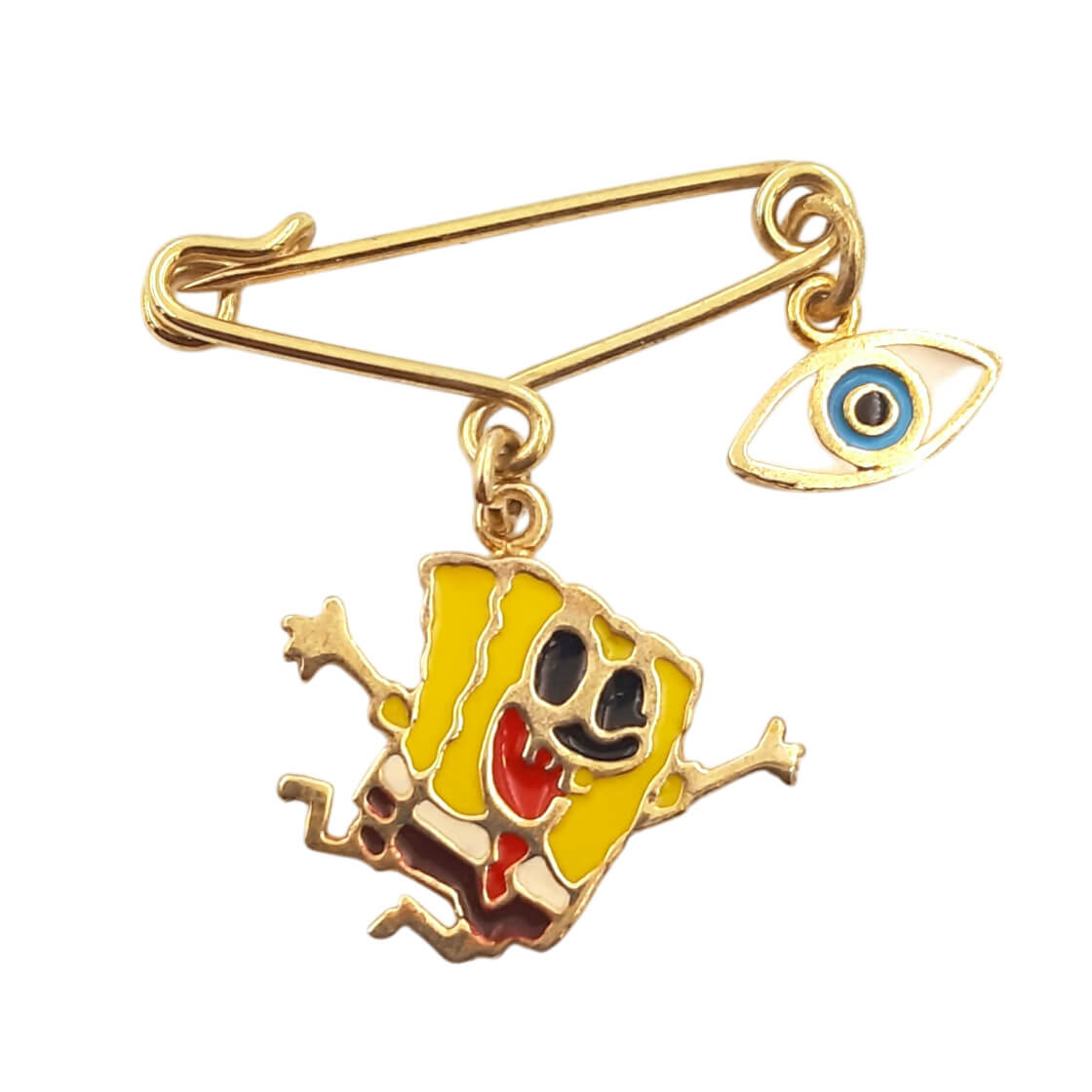 Παιδική παραμάνα από επιχρυσωμένο ασήμι 925 με ματάκι και “Μπομπ Σφουγγαράκης” σε κίτρινο σμάλτο .
