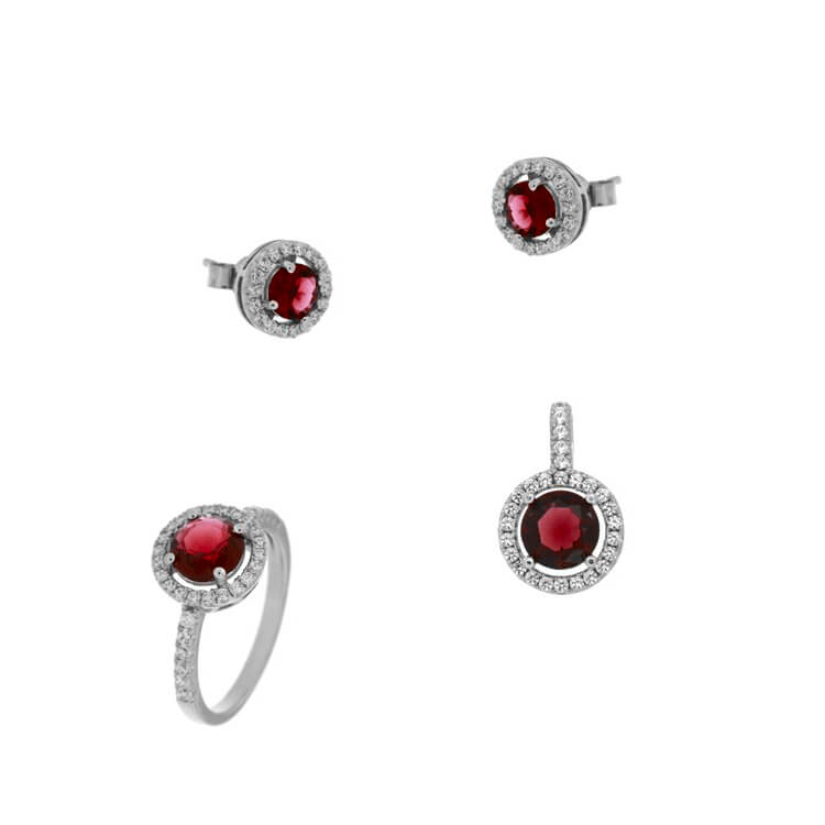 Σετ κοσμημάτων (μενταγιόν-δαχτυλίδι-σκουλαρίκια) σε ασήμι 925⁰ με ζιργκόν.