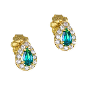 Σκουλαρίκια ροζέτα δάκρυ από κίτρινο χρυσό 14 καρατίων με τουρκουάζ ζιργκόν πέτρα.