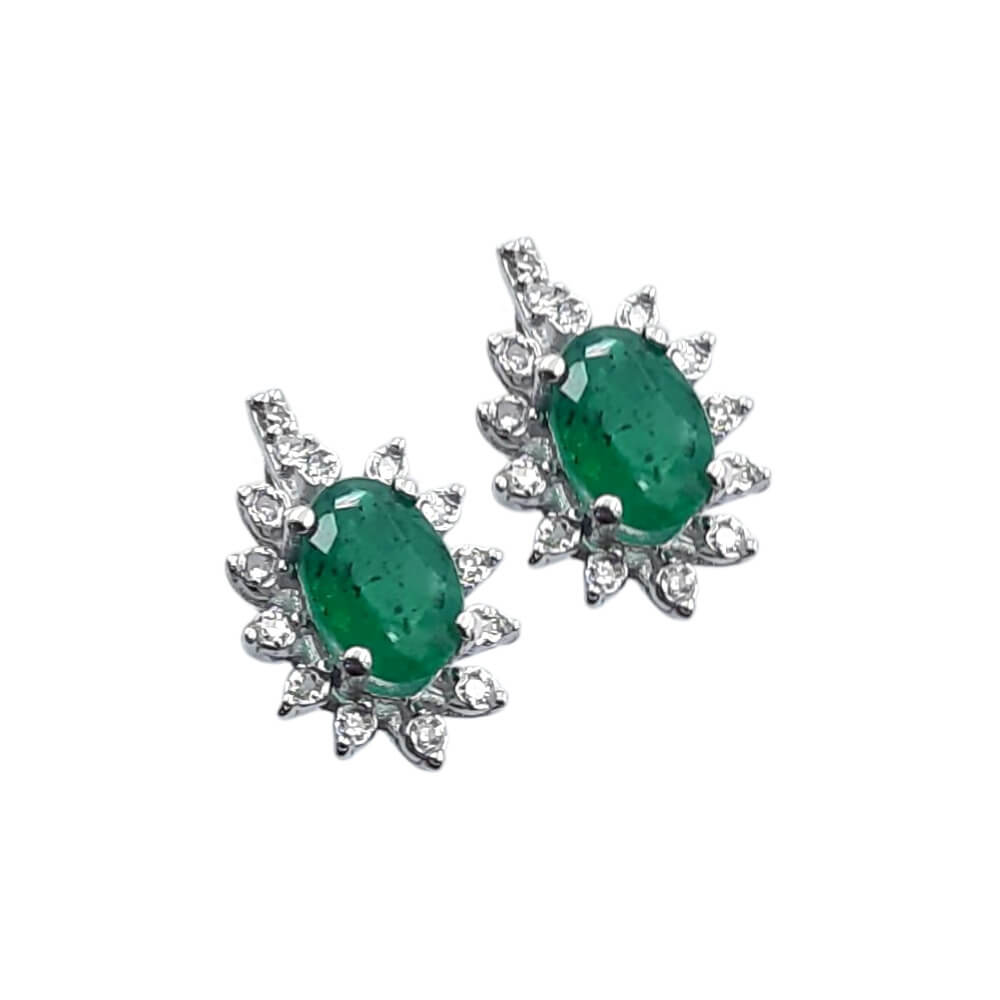 Σκουλαρίκια “ροζέτα” σε λευκό χρυσό 18Κ με μπριγιάν & σμαράγδια YSRG7013I
