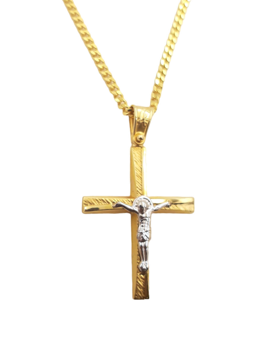 Σταυρός από χρυσό & λευκό χρυσό 14Κ με εσταυρωμένο.