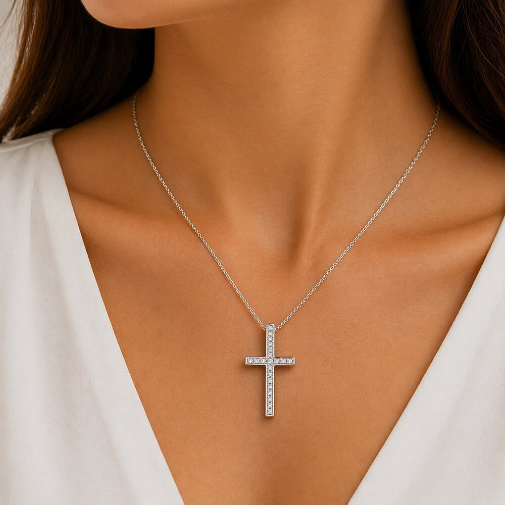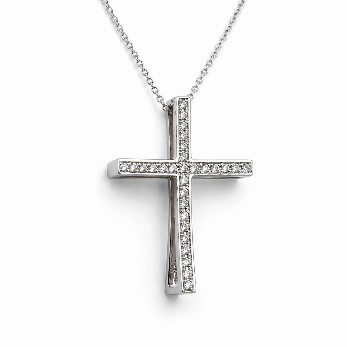 Σταυρός σε λευκό χρυσό 18Κ με διαμάντια.