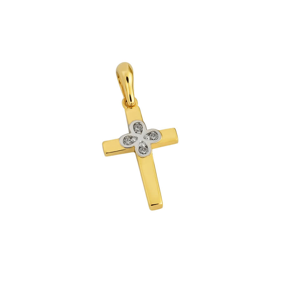 Σταυρός γυναικείος από χρυσό 9Κ με ζιργκόν.