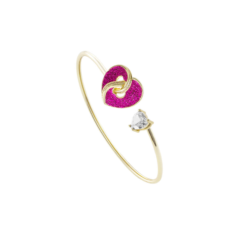 Βραχιόλι από τη συλλογή Dolley της Loisir μεταλλικό επίχρυσο σταθερό με καρδιά, φούξια glitter και ζιργκόν.